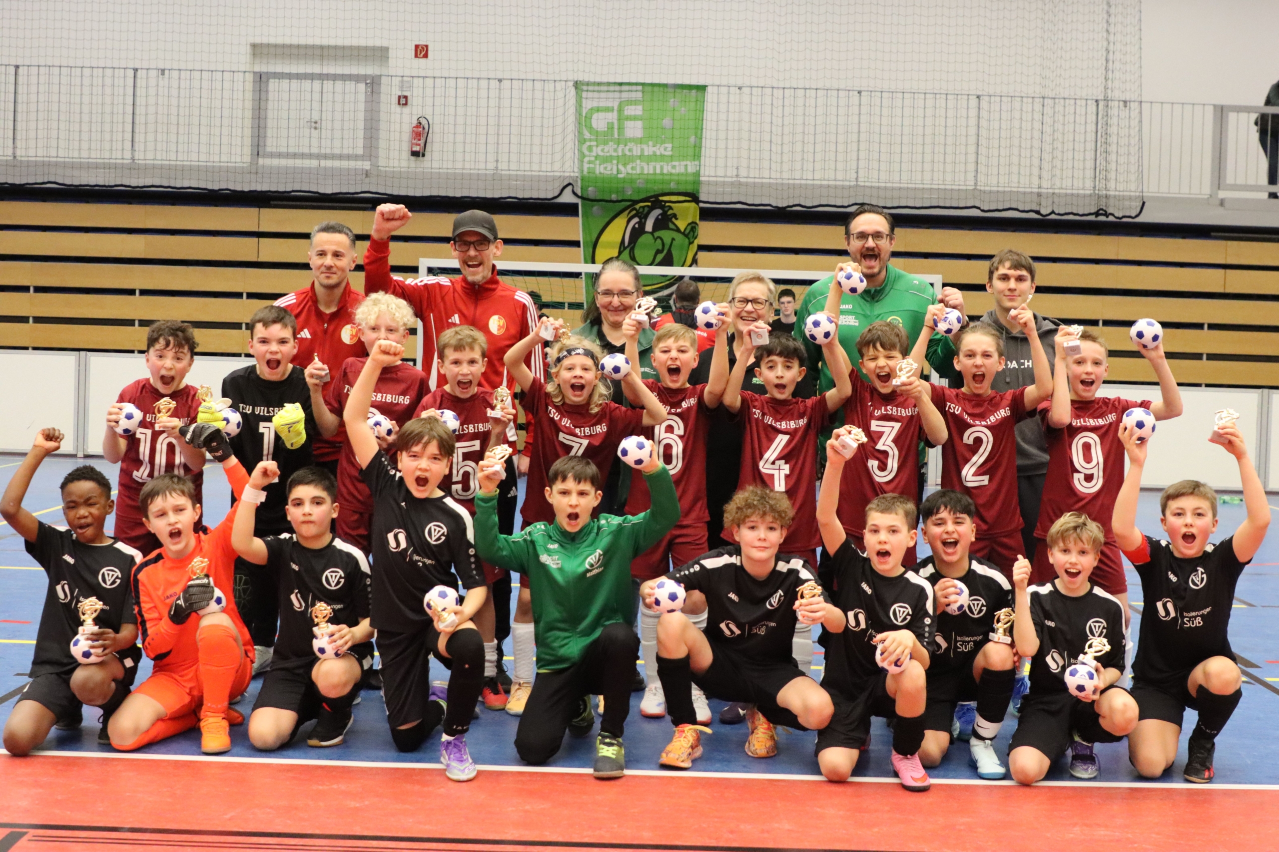 Vilsbiburg. Viele spannende Spiele und zahlreiche Tore gab es beim 17. Getränke Fleischmann Hallencup zu bestaunen, den die Fußballjugendabteilung des TSV Vilsbiburg für je acht F- und E-Juniorenmannschaften in der Ballsporthalle organisiert hatte. Am Ende holte sich beim F-Turnier der FC Ergolding nach Siebenmeterschießen den Turniersieg vor dem FC Dingolfing. Die U11 des TSV Vilsbiburg gewann das E-Turnier nach einem klaren 4:0-Sieg gegen den TV Geisenhausen.